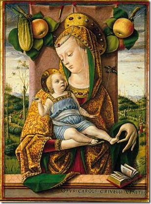 Lukisan di atas berjudul "Madonna Con Bambino" dan dibuat oleh Carlo Crivelli, pelukis yang sama dg lukisan pertama di atas. Sekilas dilihat, lukisan ini tampak biasa-biasa saja. Tapi coba perhatikan lebih seksama pada langit di bagian kanan lukisan!