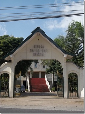 Uniknya lagi, gereja ini terletak berdampingan ama SMP Muhammadiyah lho (bener2 cuma dibatasi tembok aja). Jadi salib gereja terletak berdampingan dengan kubah masjid. Wow, benar-benar unik!