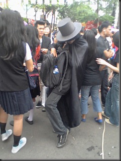 Selain makanan, di sini juga banyak cosplayer yang unjuk kebolehan (cosplay = pesta kostum ala tokoh2 anime). Ada sih yang tampil seadanya, tapi ada juga yang tampil total.