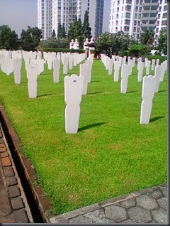 At May 2013, I had a pleasant experience by visiting Ereveld in Menteng Pulo, Jakarta. Ereveld is a Dutch cemetery located in the middle of Casablanca apartments in Menteng. Different with Kerkhoff which is a public cemetery (you can see it in Museum Taman Prasasti, near Monas), Ereveld is specially dedicated to World War II’s victims. About 70% of people who were buried here are civilians, and another 30% of them are soldiers. They came from four countries: Netherland, US, Australia, and Britain. But there were also Indonesian-origin soldiers buried here, once member of KNIL. Most of them died during the Japanese occupation in Indonesia during WW II. Most people, even Jakartans, are not aware of this magnificent place.